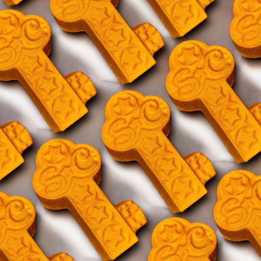 Experience a festive bath like never before with our Magic Key Bathbomb! Watch as it dissolves in your tub, releasing a cheerful scent and moisturizing your skin. Add some holiday magic to your self-care routine and treat yourself to a relaxing and rejuvenating bath.
